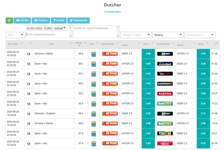 Bei Dutcher sehe ich sie, aber nicht bei Oddsmatcher.