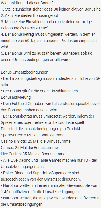 Ich habe auf Unibet ein Angebot erhalten und wollte mal fragen, ob den noch mehr bekommen hat und ob es Sinn macht, ihn zu spielen.