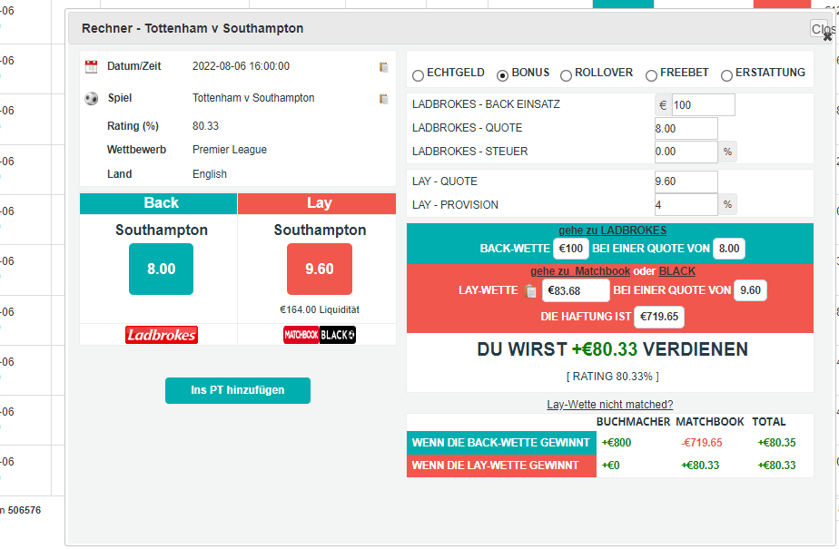 Wenn du im weiteren Verlauf des Rollovers merkst, dass es nicht so leicht wird dieses Rating einzuhalten, kannst du es bei den weiteren Wetten eben etwas herunter stellen, damit der Rechner genauer arbeiten kann.