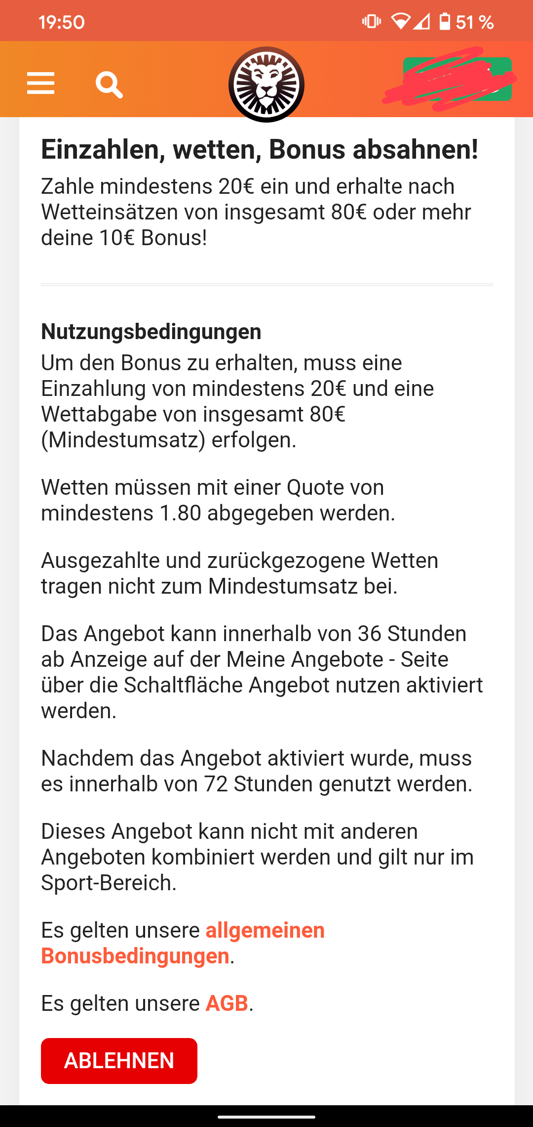 LeoVegas 10€ Bonus (Mind. Einzahlung 20€+Mind. Umsatz 80€Verfasst in Exklusive abgelaufen