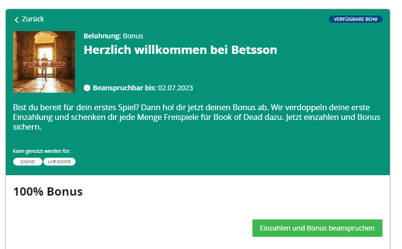 • RE: Willkommensbonus Betsson • Erstattung 100 €