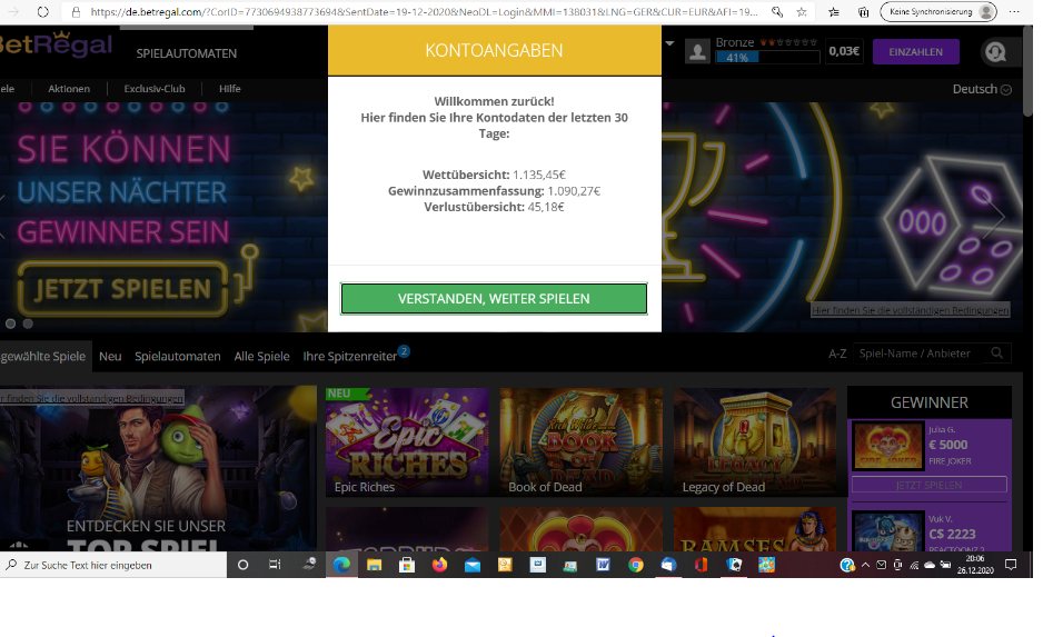 den Support habe ich schon kontaktiert, aber noch keine Antwort bekommen. Die 0,3€ haben nichts damit zu tut das ist der Rest vom Automaten Spiel